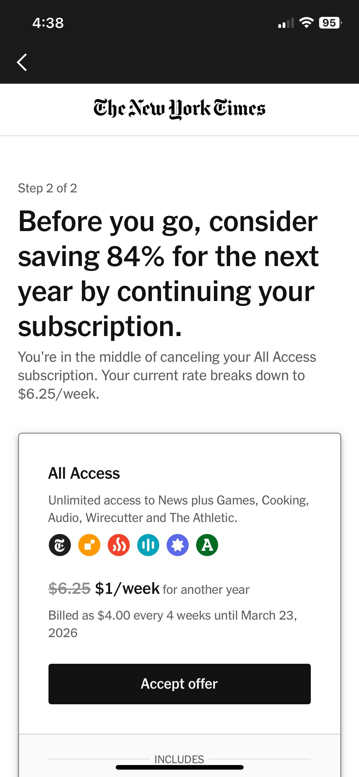 P.S. - For real, though, I’m more nuanced. For apps + subscriptions I use a lot or that deliver a lot of value (like Beehiiv), I support them. But there are many subscriptions that I rarely use so I’d rather try to cancel.